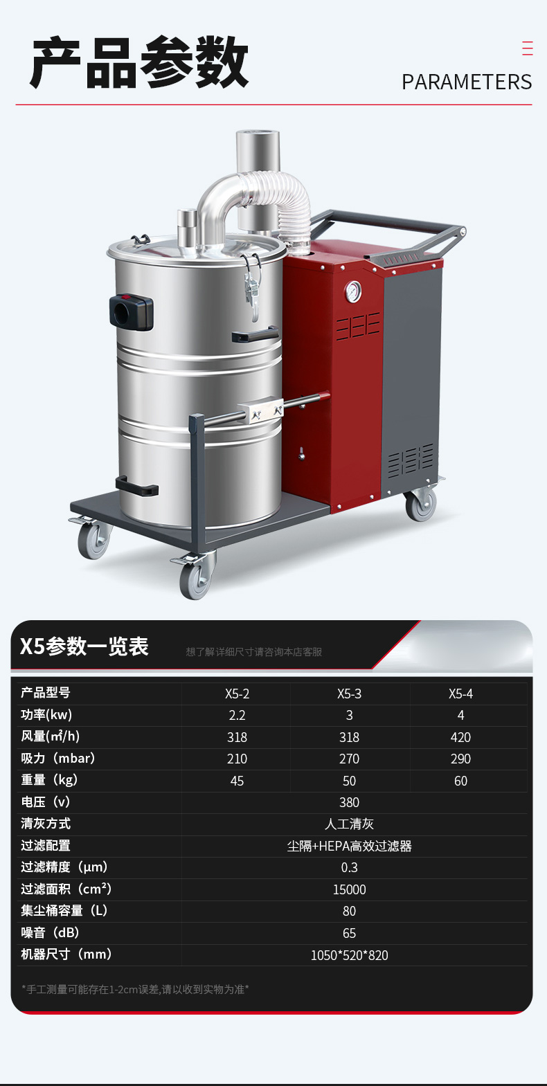 宁夏坦洁380V双桶不锈钢工业吸尘器X7系列